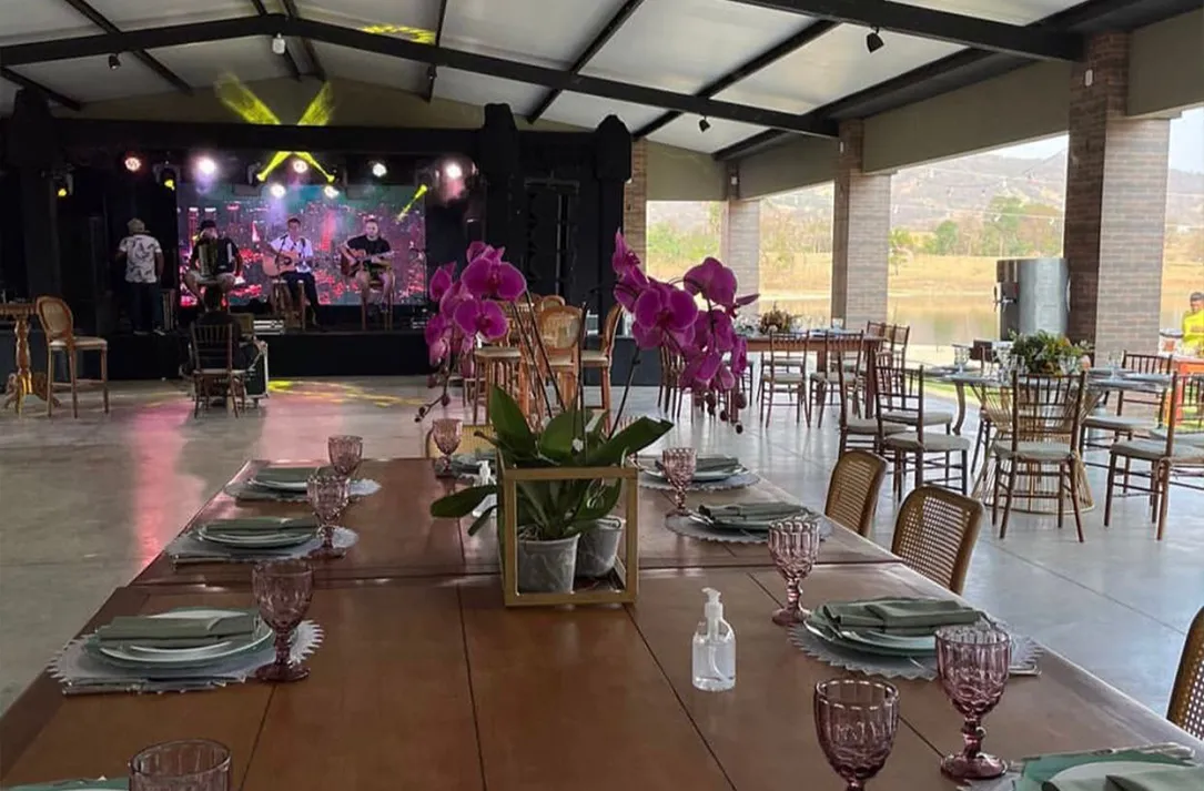 O local conta com um jardim gramado, muito utilizado para casamentos ao ar livre, com vista para o lago e para o pôr do sol. O espaço também dispõe de piscina e casa para hospedagem.